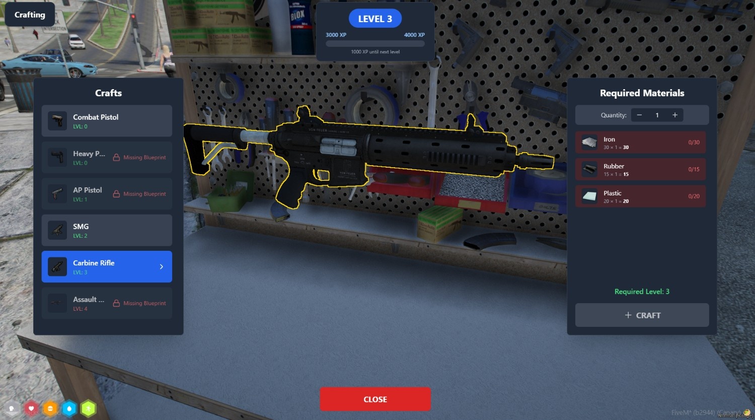 The Dynyx Crafting System includes a flexible level progression system that starts at Level 0, with XP requirements increasing by 500 per level and fully configurable. You can also toggle XP requirements per item, giving you complete control over how players progress through crafting.