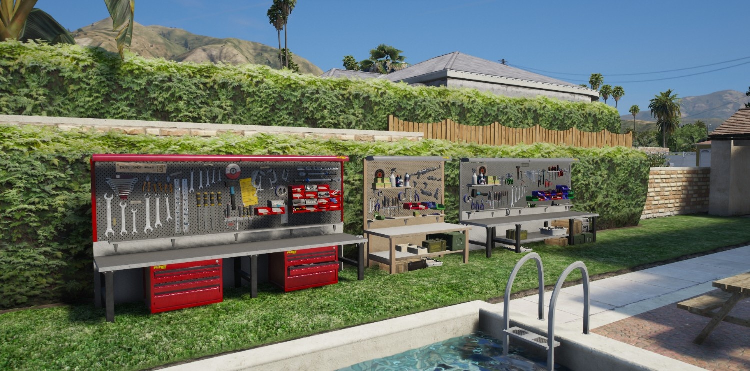 The Dynyx Crafting System supports both present tables that stay fixed in place and placeable tables that can be picked up and moved. Whether you are setting one up in a garage, backyard, or gang hideout, customization feels smooth and effortless. Creating unique table variations is simple thanks to the modular configuration.