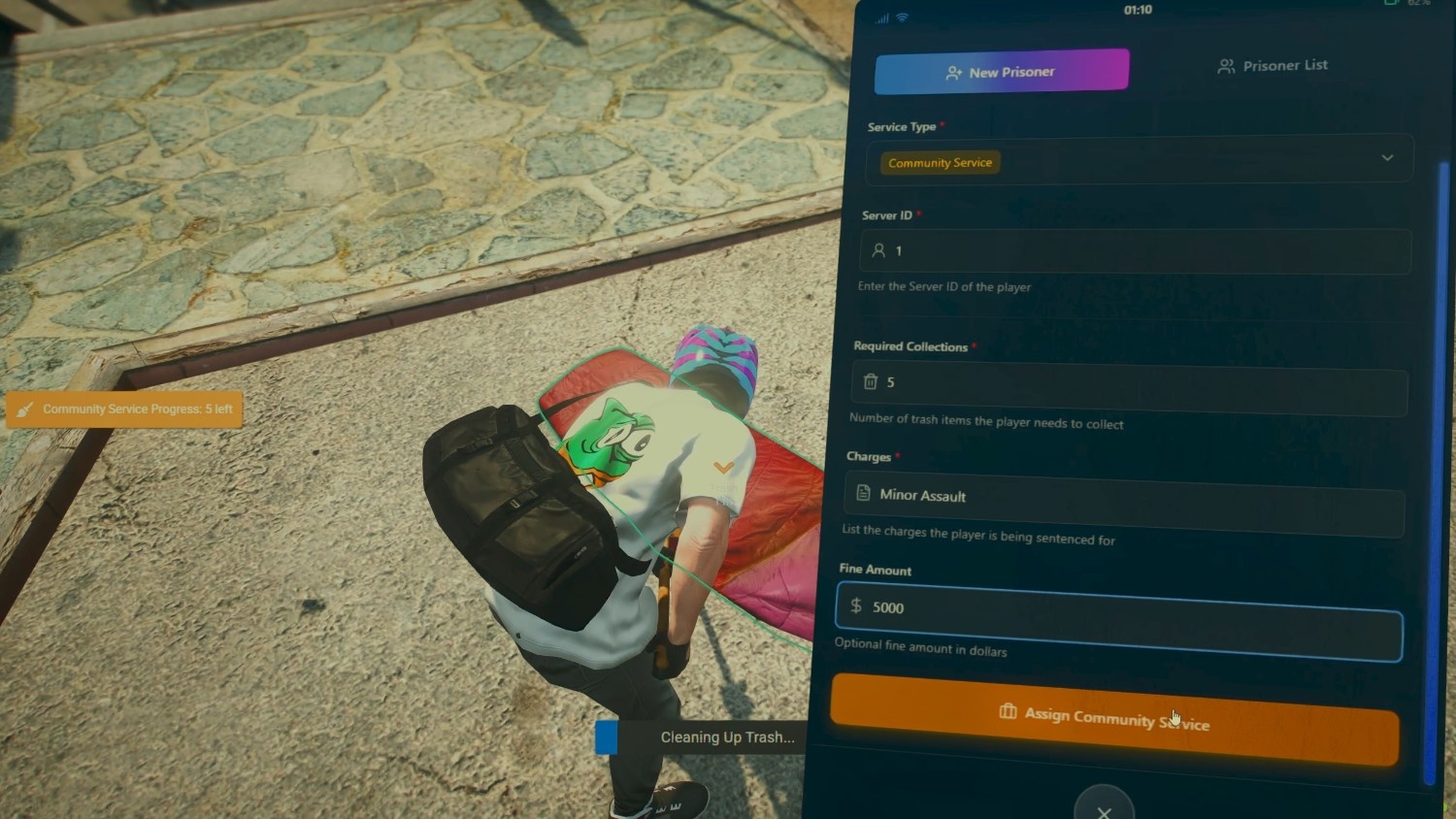 Skip the cells and assign offenders to meaningful tasks like trash pickup, street sweeping, or yard work. Fully customizable with task counts, animations, and sentencing reasons. A perfect fit for roleplay-focused servers that want real consequences without jail time.