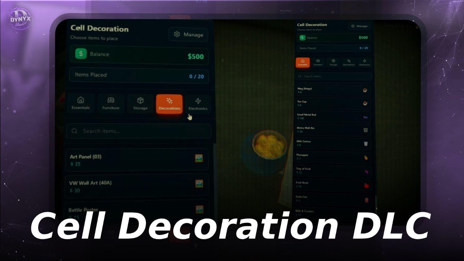 Allows prisoners to customize their cells with placeable props and storage.