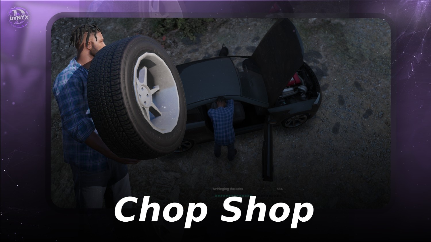 Steal, dismantle, and chop vehicles through a chop shop workflow.